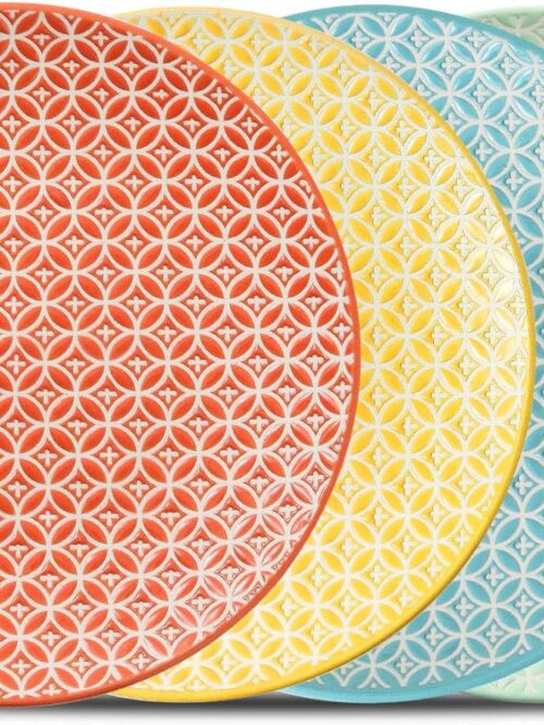 - Fit under plates/bowls to prevent your table from spill, lace embossed 13″ round charger plates fit neatly under salad plates, soup bowls, and dinner plates to create a firm visual appeal and an ideal functionality.