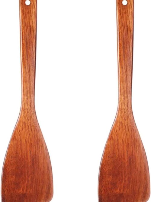 - 【Practical Design】 Solid wood spatula: 13.3in (L) x 3.4in (W); Slotted wood spatula: 12in (L) x 2.8in (W). The blade edge of our spatula is beveled, it is easier to slip under food for flipping. The ergonomic grip allows for extended use without discomfort. With Extended handle that offers enhanced grip and keeps your hands safely away from heat, it is perfect for both home cooking and professional kitchens.