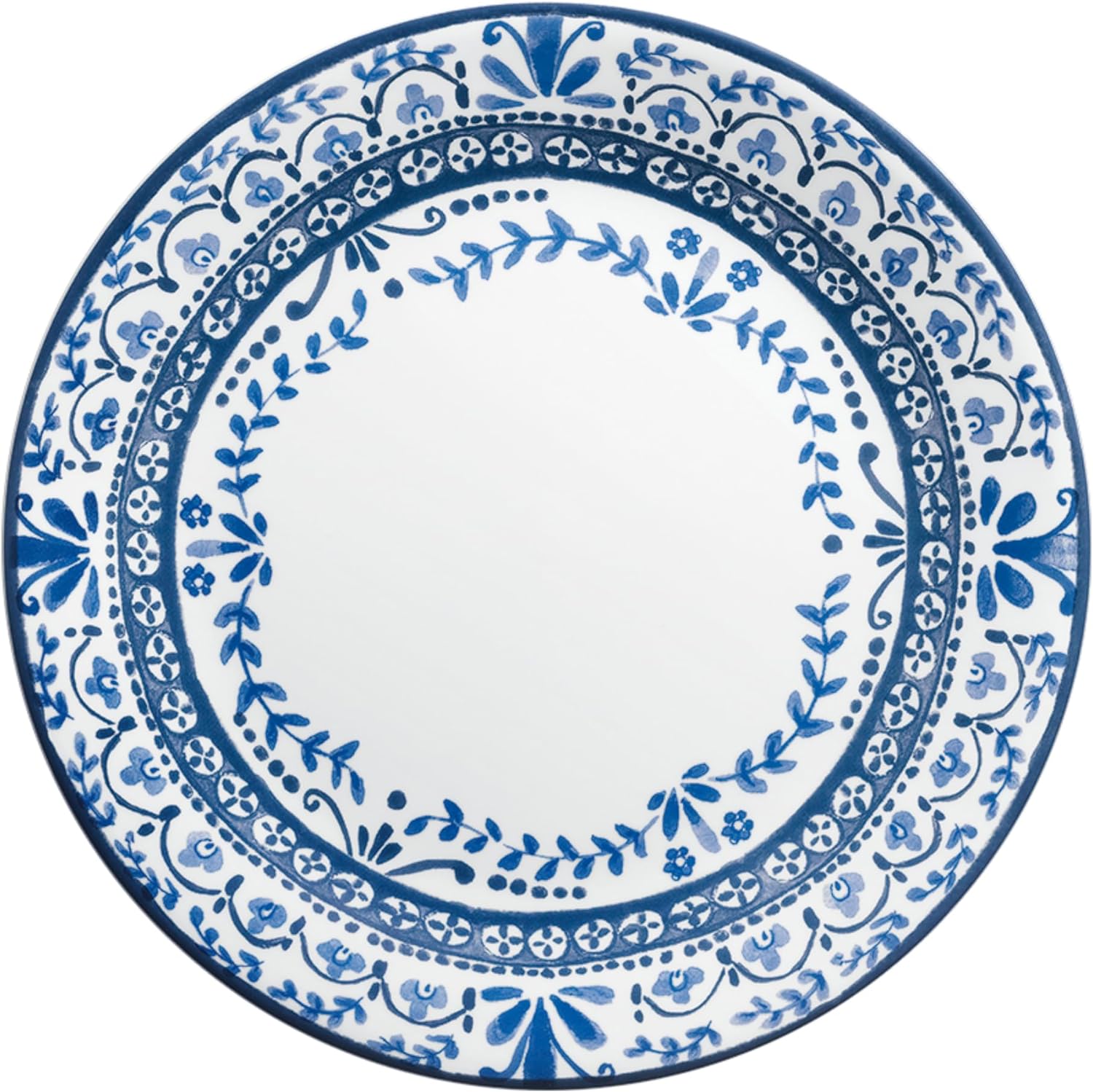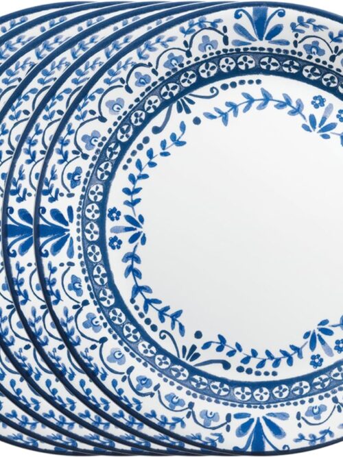 8 inch Porcelain Dinner Plates, Large Size Serving Plate for Salad, Pancakes, Steak, Set of 6, Vintage Blue