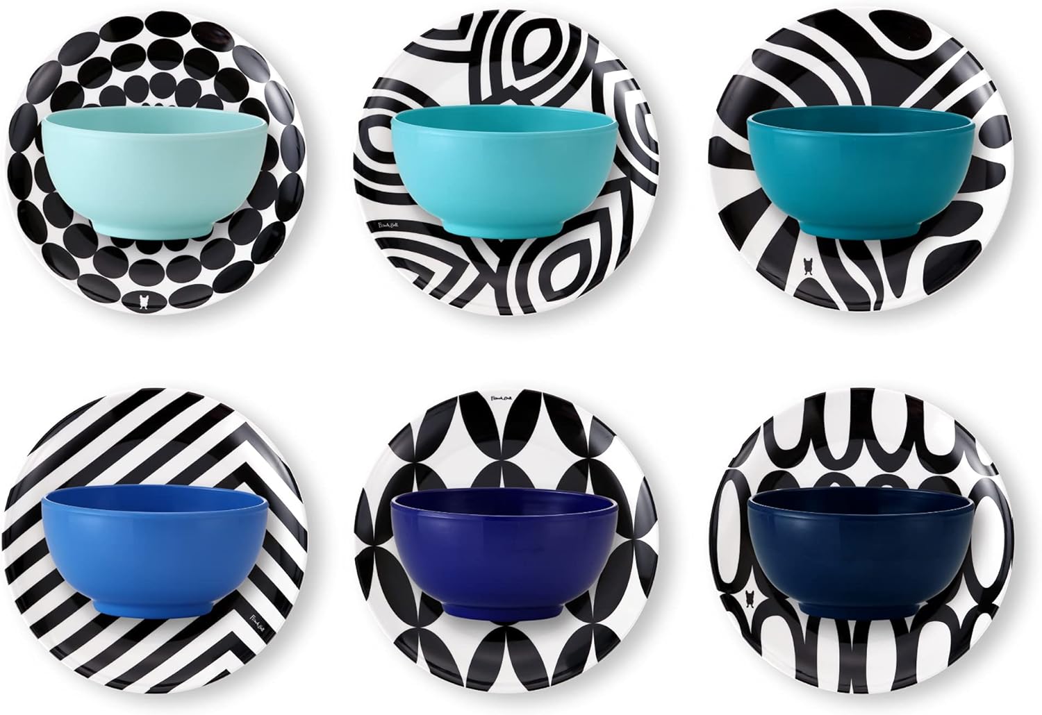 Melamine Assorted Plates-6 Piece Set -Melamine Dinnerware-Platter, Serving, Party, Platter, Dish (6″ Appetizer Plate, Black & White)