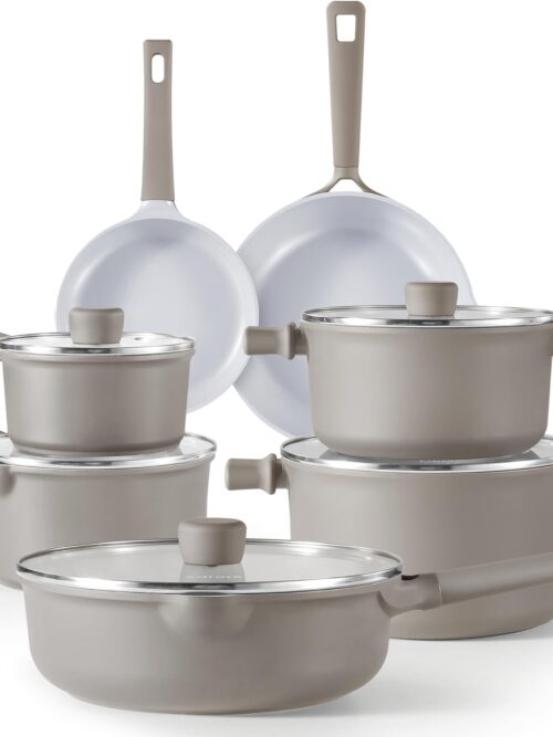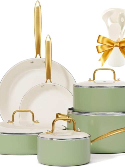 - Heats Rapidly and Evenly: The non-stick cookware set features a durable aluminum core that conducts heat quickly and evenly, making it easy to clean. The aluminum exterior is dense and nonporous, while the coating of the pot set is durable and highly wear-resistant for long-lasting performance. It is sturdy enough to withstand metal utensils such as spoons, spatulas, and whisks.